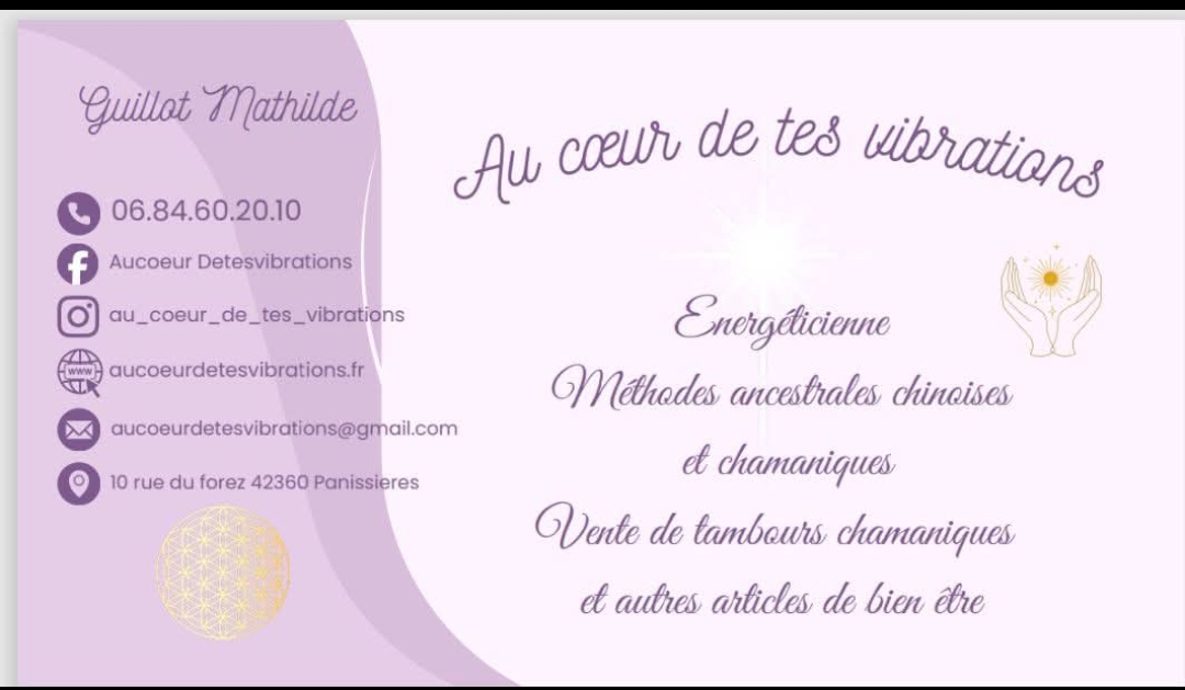 Bonjour, Je suis Mathilde Guillot, énergéticienne, thérapeute non conventionné et pratiquante de plusieurs méthodes alternatives: la médecine chinoise ancestrale et chamanique. Je suis installée sur la commune de Panissières et j'ai créer mon entreprise en 2021 qui regroupe plusieurs choses: