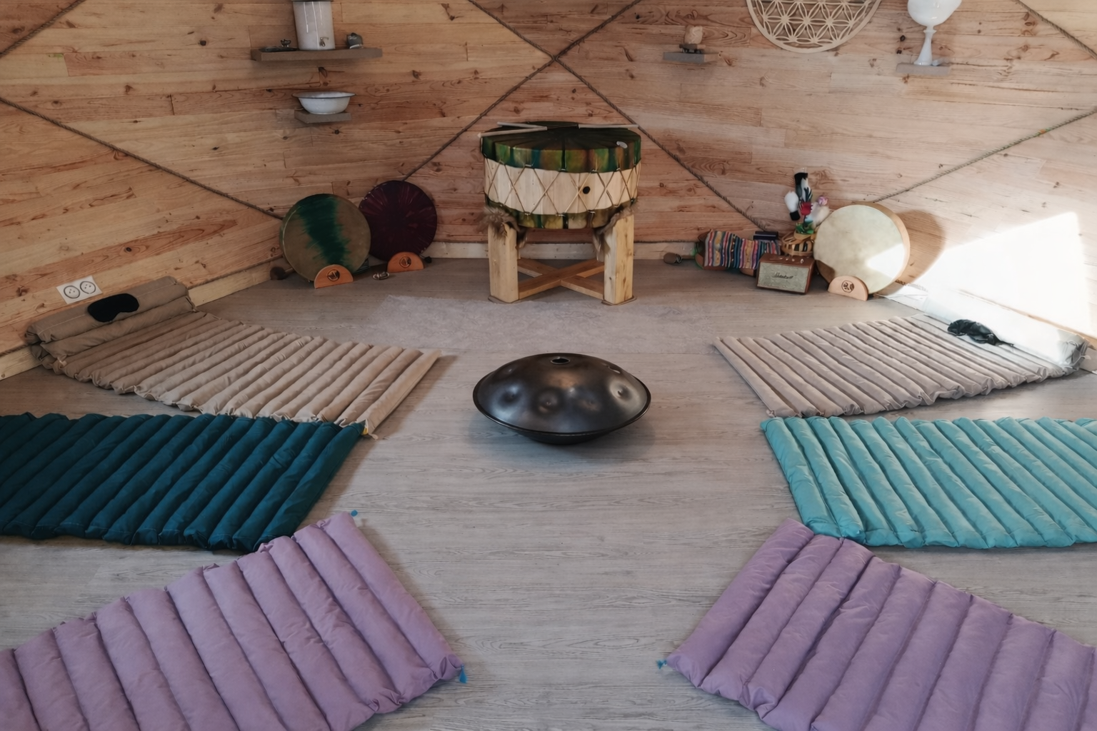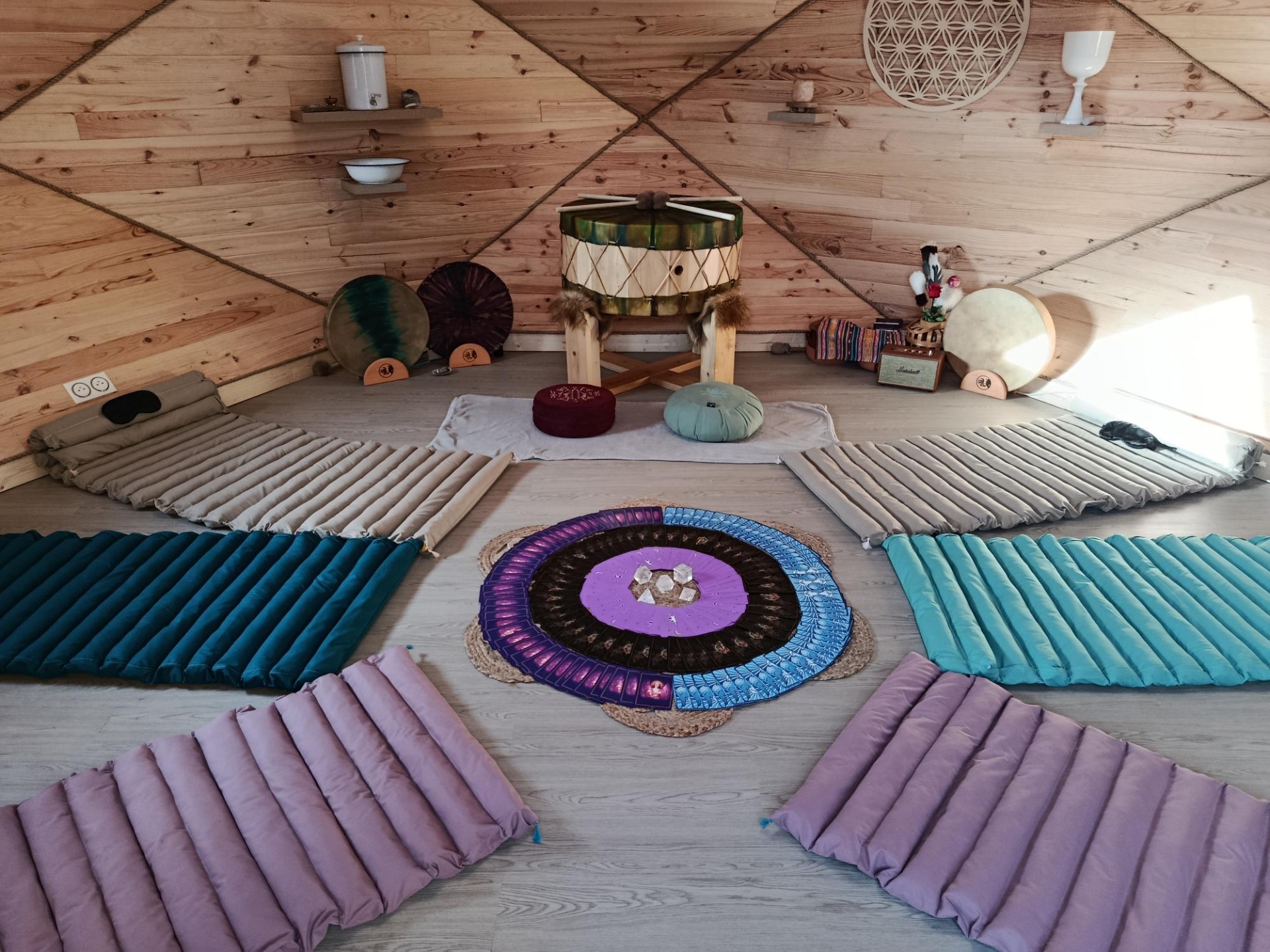 Dans un espace dédier aux soins énergétiques, mon zome géodésique, pendant environ 1h, je vous propose de vous détendre et de voyager grâce aux méditations et aux divers instruments vibratoires dont je dispose. Vous pouvez vivre ce moment de détente couché confortablement sur des matelas avec votre coussin personnel et avec ou sans votre plaid