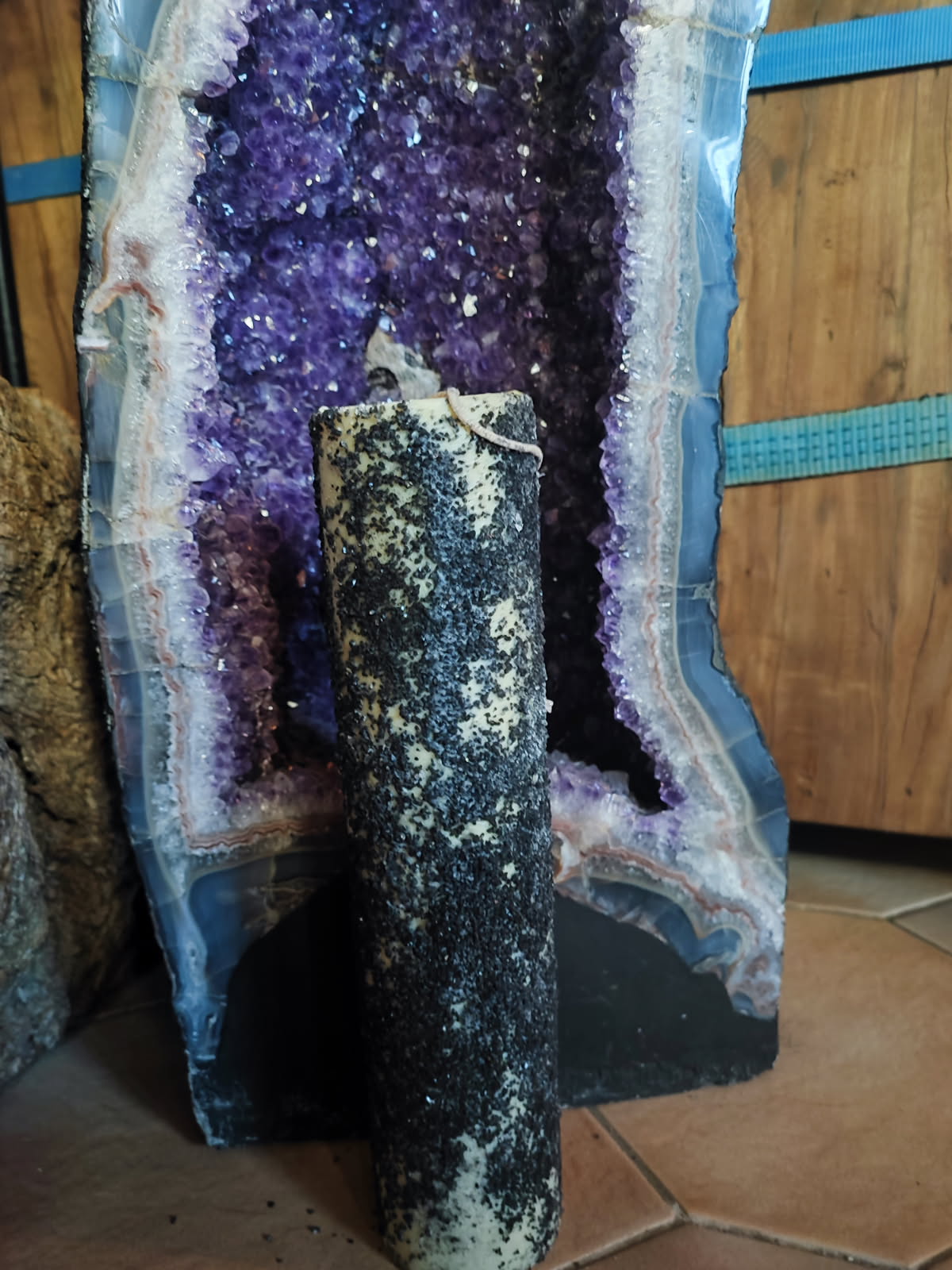 Grosse bougie de 7 par 30 cm en cire d'abeille enrobée de sel noir d'Hawaï exorciser, préparée selon des procédés alchimiques anciens issus de la véritable tradition. Elle est a utilisé pour les dégagements dans les lieux.
