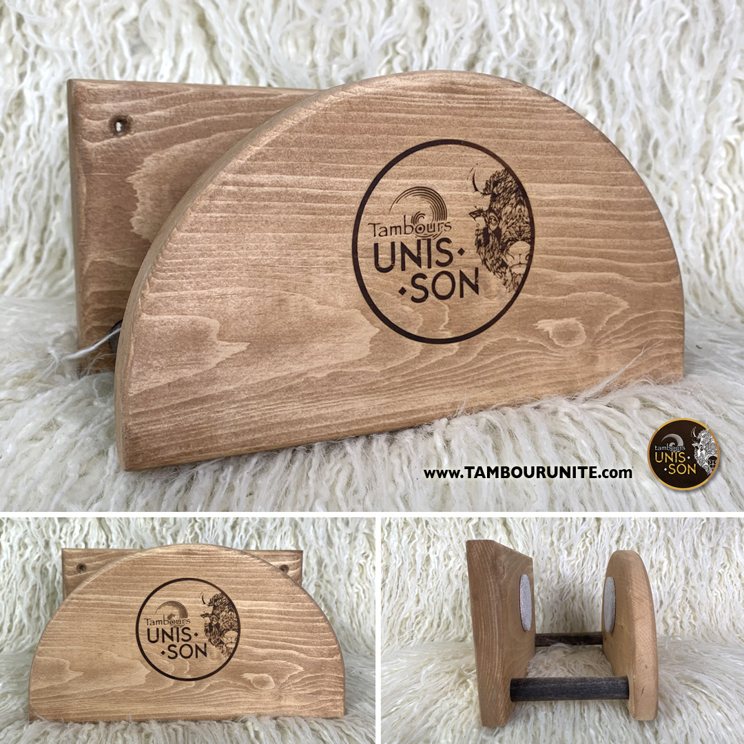 Le support à tambour Unis-Son a été conçu soigneusement pour créer un équilibre parfait entre l'esthétique et sa fonctionnalité. Avec le logo Unis-Son gravé dans le bois de pin blanc, il peut se fixer directement au mur, ou tenir debout sur une table pour apprécier la présence de votre Tambour Unis-Son et mettre sa beauté visuelle en valeur.