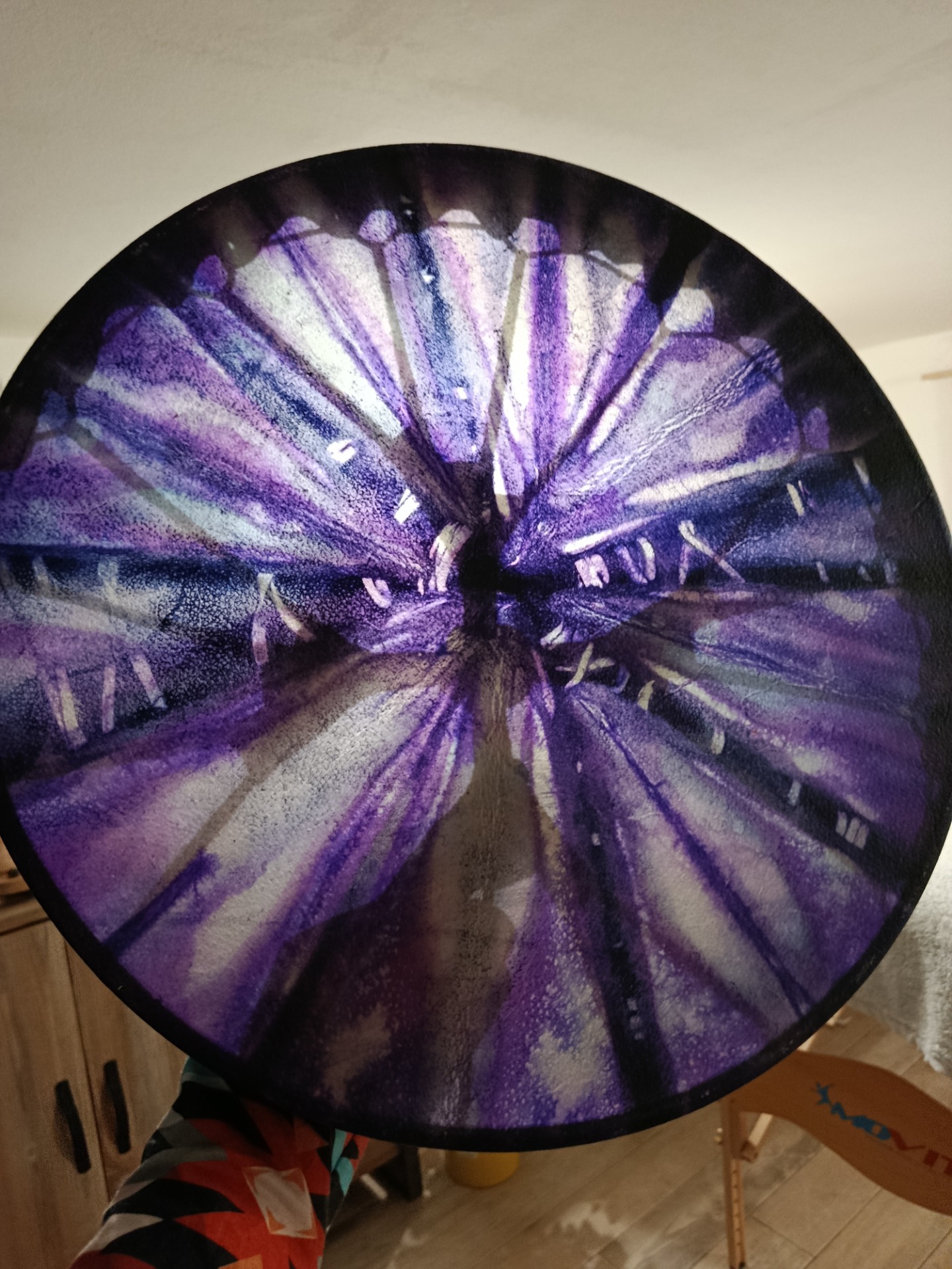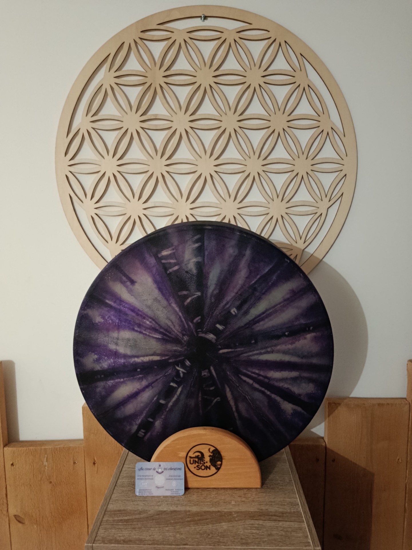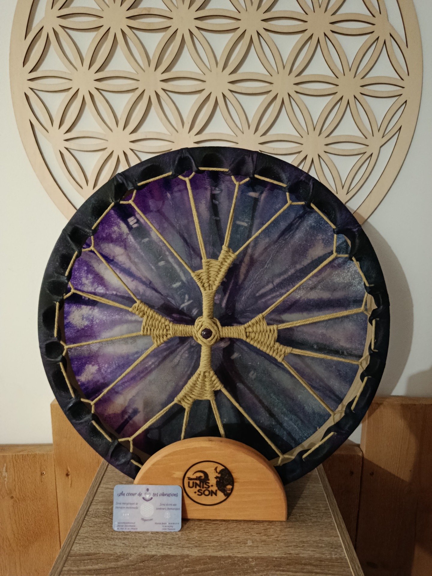Les Tambours Unis-Son sont composés d'un cercle en érable très résistant aux variations d'humidité. Les peaux de bison sont choisies avec grand soin et l'intention est d'honorer les animaux desquels ils proviennent (destinés à la consommation alimentaire). La poignée en 100% coton contient une pierre au milieu pour celui ci, c'est une améthyste. Une mailloche est incluse avec tout achat de tambour. J'offre une garantie complète d'un an sur toutes les créations. Le tambour est un outil vibratoire pour nous ancrer dans notre pouvoir créateur, nous reconnecter à notre vibration d'origine. Ils sont fabriqués à la main avec amour au Québec.